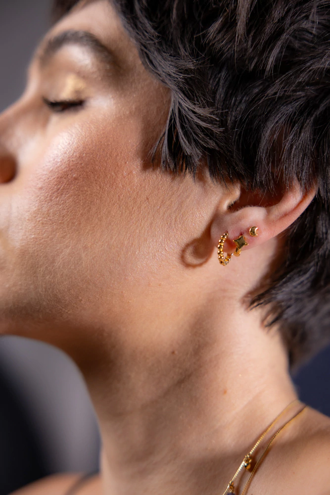 Material: folheado a prata 70 milésimos ou folheado a ouro 7 milésimos. Banho hipoalergênico e livre de níquel, com verniz protetor.