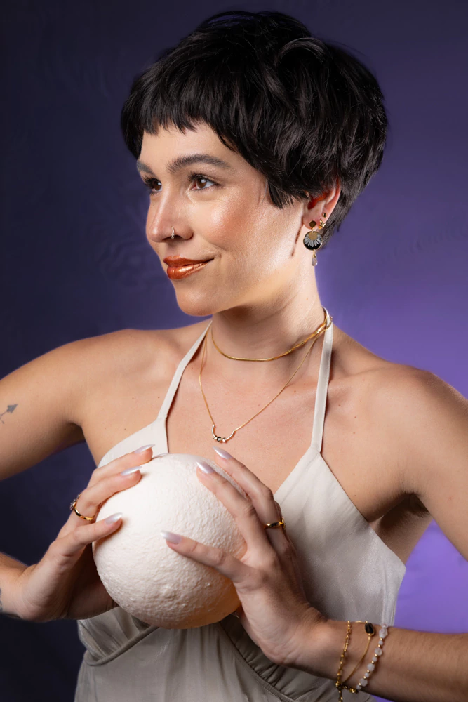 Cuidados com a sua biojóia: Evitar contato com água, produtos químicos, sol prolongado e suor excessivo. Ao aplicar cosméticos, espere alguns instantes para usar seu acessório. Guardar cada peça em local seco, separadamente. Evitar atrito, quedas e impactos.