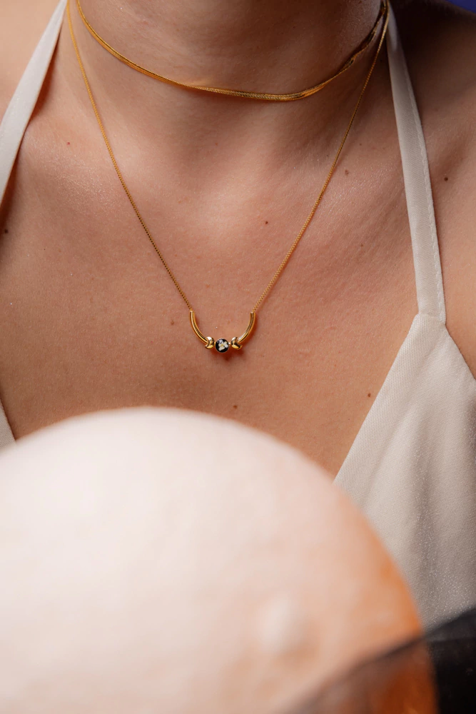 Cuidados com a sua biojóia: Evitar contato com água, produtos químicos, sol prolongado e suor excessivo. Ao aplicar cosméticos, espere alguns instantes para usar seu acessório. Guardar cada peça em local seco, separadamente. Evitar atrito, quedas e impactos.