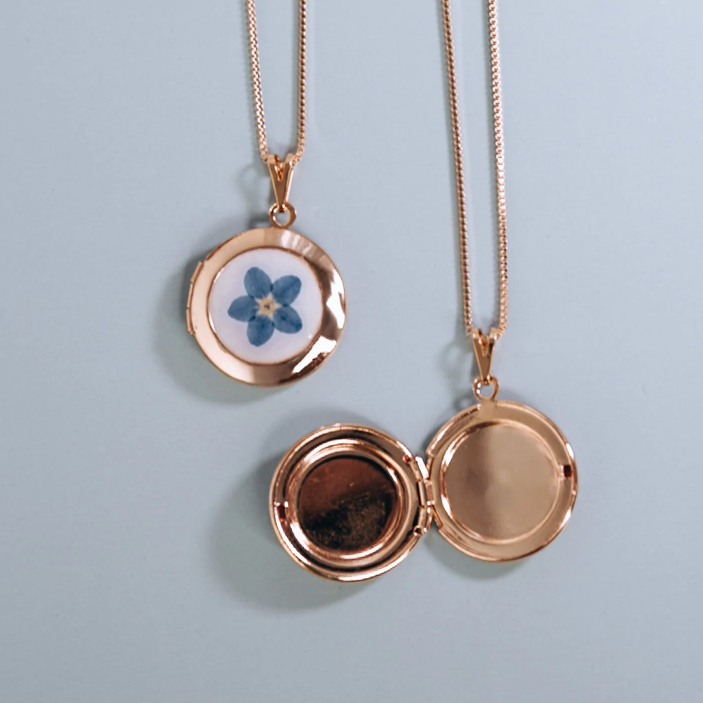 Relicário botânico com encaixe para foto por dentro. Você pode pedir com uma foto já inclusa! Neste caso, basta enviar o arquivo de foto desejado para o e-mail: [email protected]